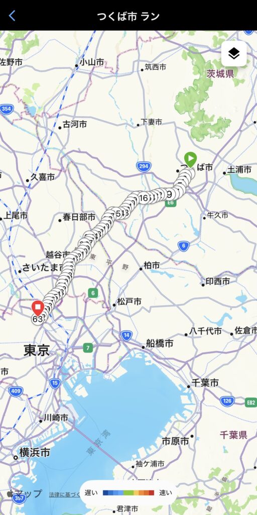 どこの駅から帰ってこようかと色々と悩みましたが「そう言えばちょうど1ヶ月前、つくばマラソンを走ったなぁ!つくば駅イイかも!」と、調べてみると約60㎞🛣️うん。ちょうどイイ🤗