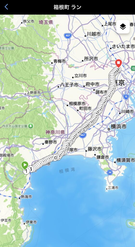電車で1時間20分(28駅)の道のりは、私の足で走ると5時間20分掛かりました😁